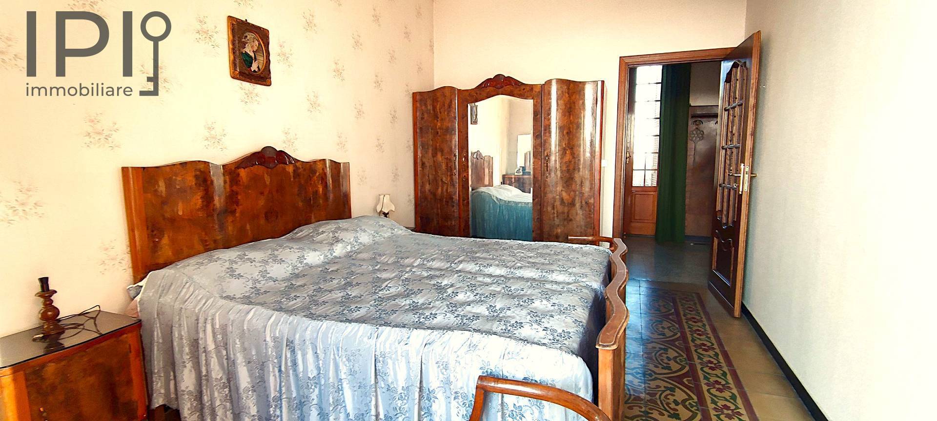 - Between the ground floor and the first floor, there is the entrance door to another small flat consisting of a kitchen with a wood-burning fireplace and a bedroom with bathroom.
