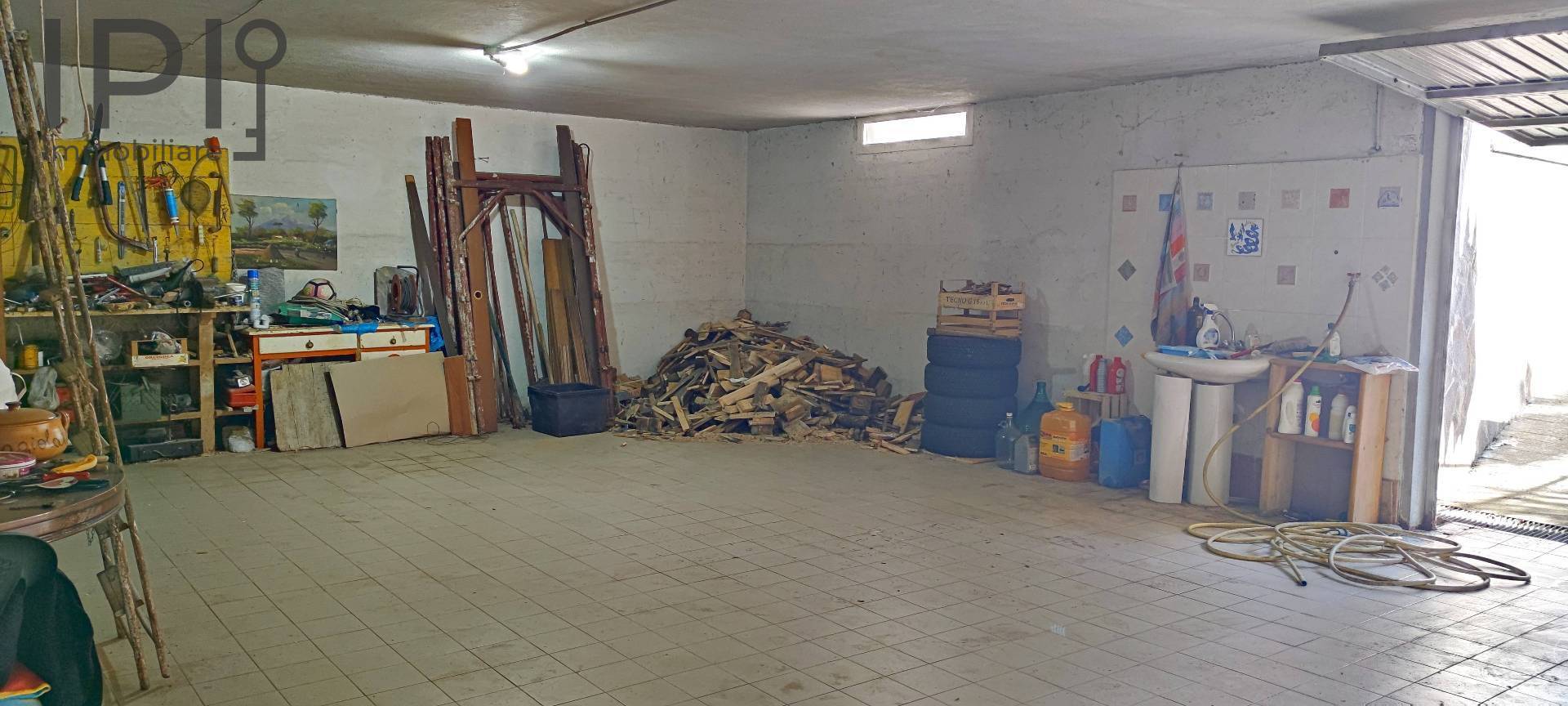 In the basement, with access via a driveway gate, there is a large garage, a large storage area, a beautiful tavern with a wood-burning oven, and a toilet.