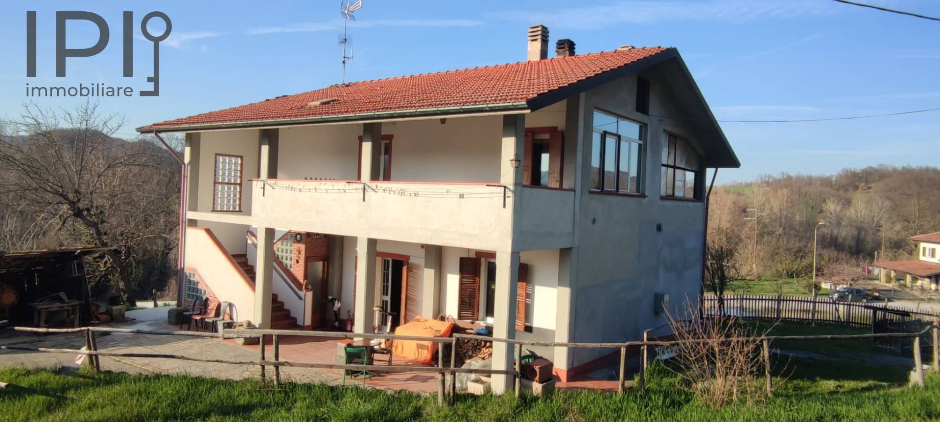 Het eigendom wordt gecompleteerd door het omliggende heuvelachtige terrein, twee ruime bijgebouwen (geschikt als magazijn of opslag voor gereedschap) en twee kelders. De woning is voorzien van een septic tank (fossa biologica).
